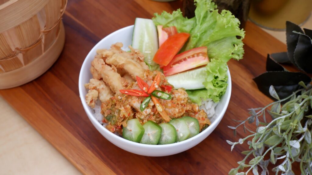 Tak hanya kenyamanan kamar, kelezatan pun hadir dari dapur Icip Icip Bar & Lounge melalui menu spesial Ayam Tampol Sambal Ganja. Ayam goreng tepung renyah disiram sambal asam udeung khas Aceh—perpaduan rasa pedas, asam segar, dan gurih udang yang menggoda selera. Disajikan hangat dengan nasi putih pulen dan lalapan segar, menu ini siap bikin ketagihan hanya dengan IDR 45.000 nett/porsi.