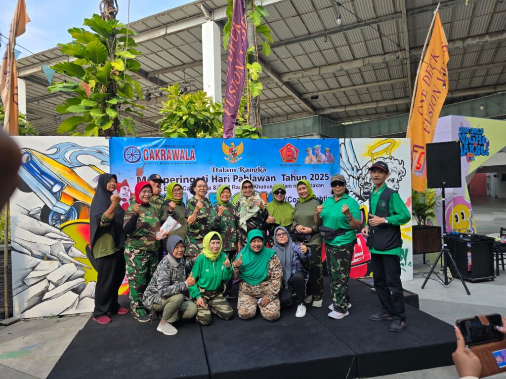 kilasgaya.com | SURABAYA – Tawa dan semangat pagi mewarnai kegiatan Fun Aerobic yang diikuti oleh 80 orang, terdiri dari para veteran, istri veteran, dan putra putri veteran, di One Deck Gastropub lantai UG ARTOTEL TS Suites Surabaya. Kegiatan ini digelar untuk memperingati Hari Pahlawan sekaligus mempererat silaturahmi dan kebersamaan antar anggota keluarga besar veteran.