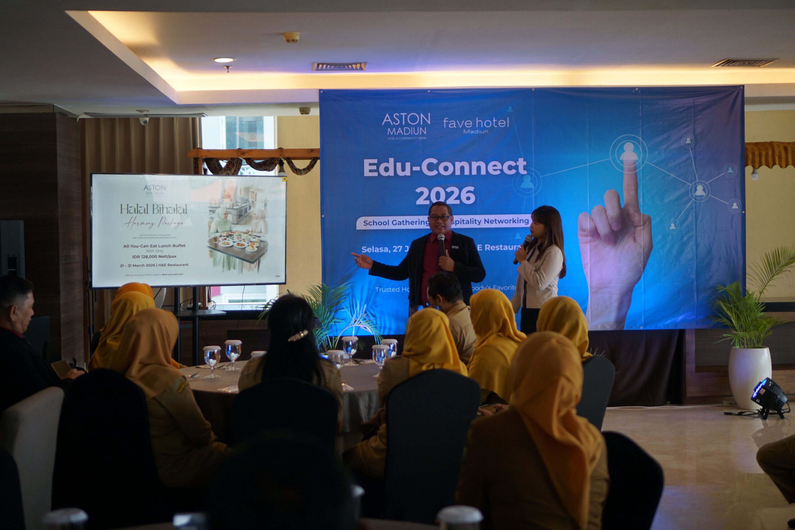 “Kami sangat senang dapat menyambut bapak dan ibu guru dari SMP 1 sampai SMP 14 Madiun hari ini. Melalui Edu-Connect 2026, kami ingin menegaskan bahwa Aston dan favehotel bukan sekadar tempat menginap, melainkan mitra strategis bagi sekolah untuk menyelenggarakan berbagai kegiatan edukatif dan seremonial dengan memberikan pelayanan terbaik,” ujarnya.