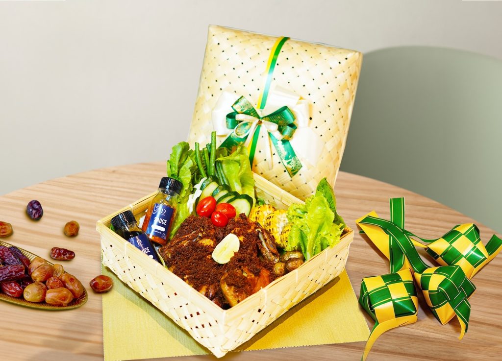 Beragam hidangan khas Lebaran disajikan dalam paket ini, dengan menu unggulan seperti ketupat lodeh manisa, opor ayam, telur petis, sambal goreng ati ampela, serta koya kelapa sambal terasi yang menghadirkan cita rasa khas Nusantara yang kaya rempah dan menggugah selera.